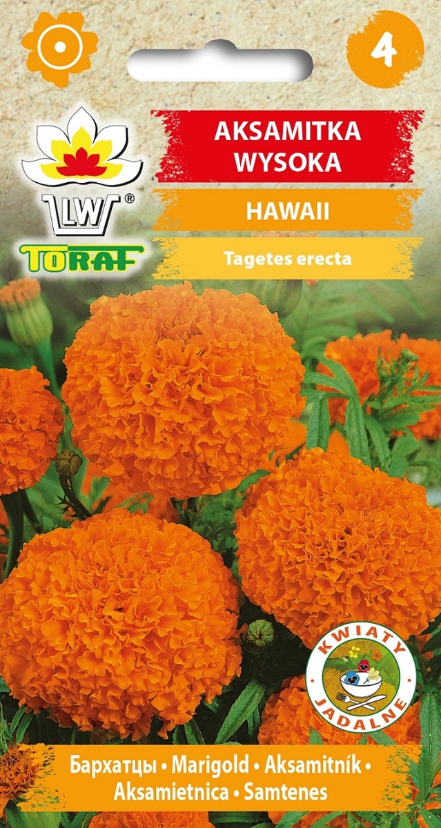 Aksamitník vzpřímený Hawaii dorůstá do výšky 30 až 40 cm. Barva květu je sitě oranžová. Aksamitník vysazujeme na slunné a nebo polo slunné stanoviště. Kvete velice bohatě od června až do října. Aksamitníky lze vysadit do větších truhlíku, mis a nebo přímo do květinových záhonu. Aksamitník je velice vděčná a nenáročná rostlina na pěstování. Aksamitníky zvládne pěstovat i začáteční zahrádkář.