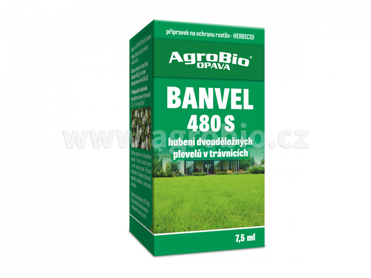 Banvel 480 S - selektivní systemický herbicid je vysoce účinný postřik proti plevelu v trávníku. Jedná se o přípravek který hubí pouze plevel v trávníku. Působí likvidačně na dvouděložné plevele (kukuřice setá, pastviny, trávníky, úhorové plochy atd.). Nepůsobí na trávy. Jeho použití je vhodné také pro mladé trávníky. Má velmi rychlý účinek patrný už poněkolika hodinách. Aplikace v měsících: 4,5,6,7,8,9. Součástí balení je odměrka pro snadné dávkování.