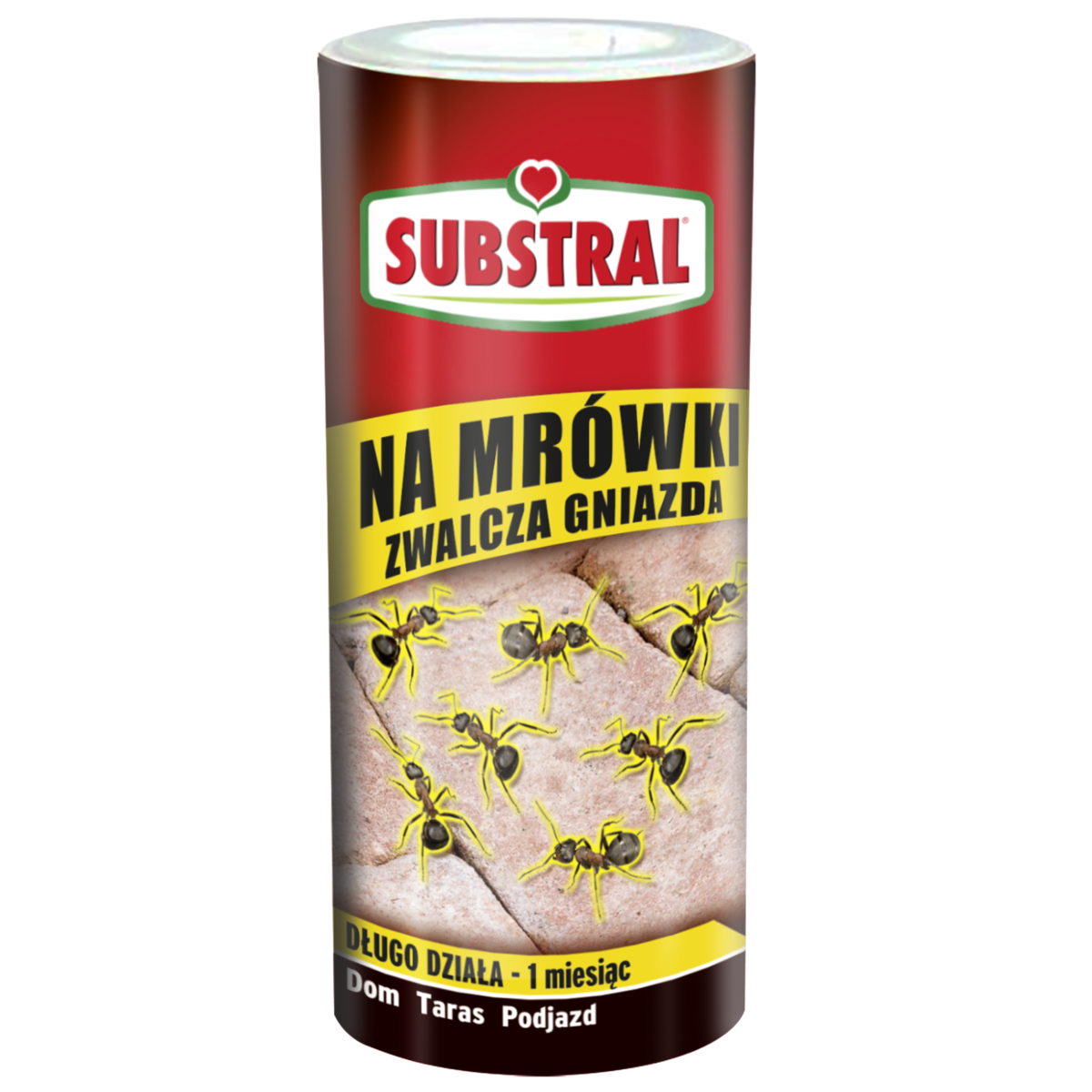 Vysoce účiny prostředek Substral ve formě sypkého prášku pro hubení mravenců v uzavřených prostorech i jejich přímém sousedství - na terasách, v altáncích, na chodnících, zahradních cestičkách, nájezdech apod. Velkou výhodou tohoto přípravku je to že obsahuje formuli která aktivně láká mravence, a tím je jeho účinnost velmi vysoká. Prostředek pro hubení mravenců Substral lze aplikovat dvěma způsoby: 1)- Jako sypací prášek, který mravenci přenášejí do hnízda, kde hubí celé kolonie. 2)- Prášek Substral lze rozpustit ve vodě a aplikovat přímo tam kde se mravenci nacházejí. Oba způsoby aplikace prášku proti mravencům Substral jsou velmi účinné. Působí na všechny druhy mravenců kteří se vyskytují v naších podmínkách. Prostředek je balen v plastové doze s dávkovacím víčkem pro snadnou aplikaci a dávkování prášku proti mravencům. 10g přípravku zničí až 50 mravenců.