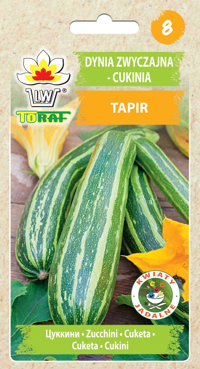 Cuketa zelená Tapir je velice oblíbená mezi zahrádkáři. Vyniká tenkou slupkou a velice dobrou chuťí. Cuketu vysazujeme 100x80 cm. Plody cukety dorůstají do délky až 25 cm. Rostlina má ráda slunné stanoviště s dostatkem vláhy. Cuketu přihnojujeme jakýmkoliv zahradním hnojivem a nebo NPK nebo CERERIT. Výsadbu provádíme v květnu. Sklizeň červen - srpen.