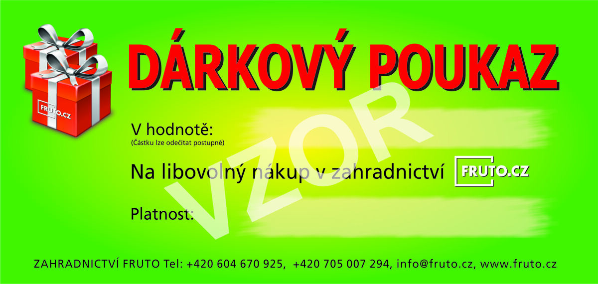 UPOZORNĚNÍ: POUKAZ BUDE VYHOTOVEN K OSOBNÍMU ODBĚRU V ZAHRADNICTVÍ FRUTO. POŠTOU NEZASÍLÁME. DĚKUJEME ZA POCHOPENÍ.
