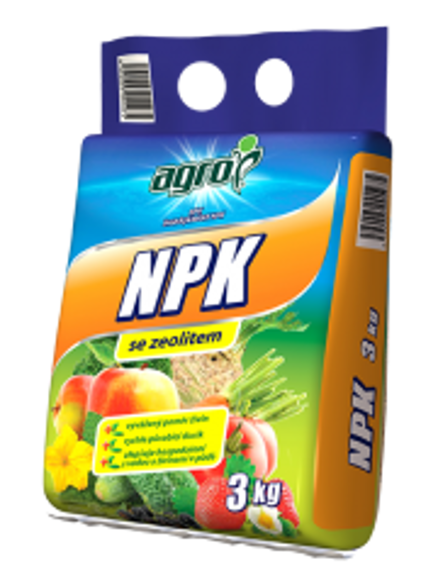 Minerální hnojivo NPK je určeno k zakladnímu hnojení ovoce a zelenou. Hnojivo NPK působí pro bujný a rychlí nárůst plodin. Obsahuje zcela přírodní horninu která v sobě obsahuje živiny které se pozvolna uvolňují do půdy a působí na rostlinu. Zeolit také vylepší strukturu a vzdušnost půdy. Hnojivo NPK je ve formě granulí a velice lehce se aplikuje. Dávkování: 1 kg hnojiva NPK vystačí cca na 8 - 30 m2 dle typu rostliny.