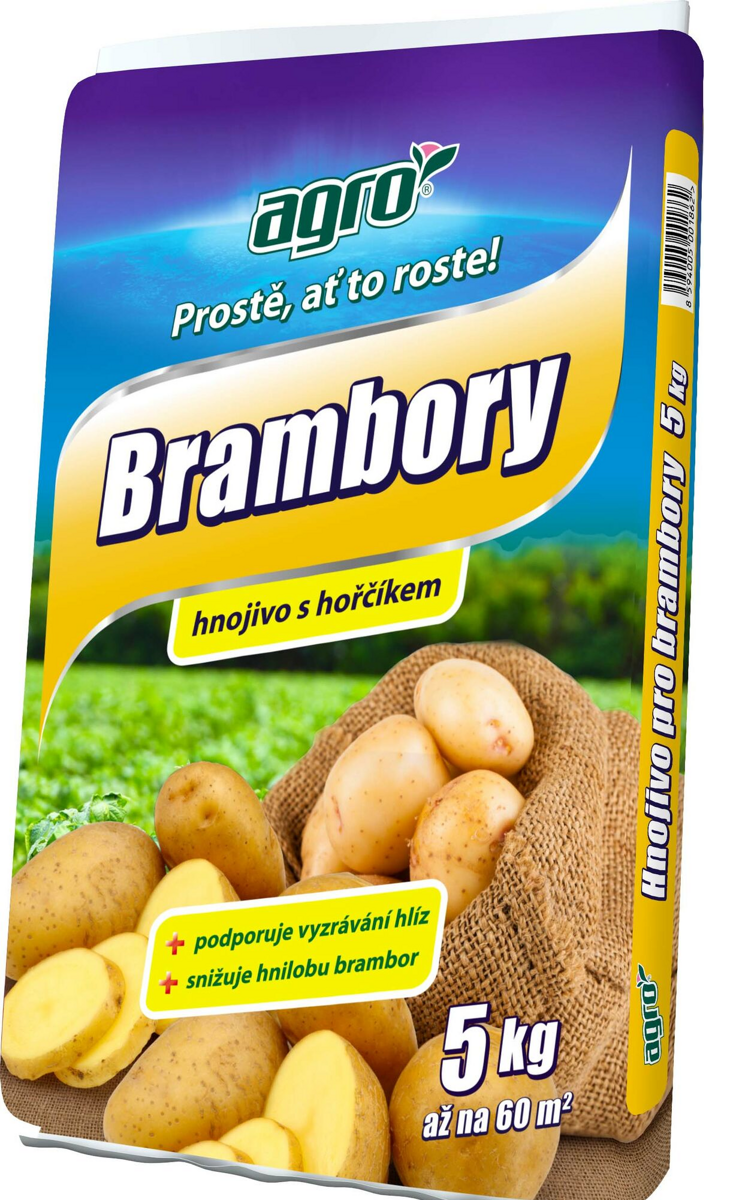 Agro HNOJIVO PRO BRAMBORY je ve formě granulí které se velice snadno aplikují. Jedná se o kombinované hnojivo s přídavkem hořčíku který napomáhá bramborám s vyšším obsahem škrobu. Hnojivo je dobré aplikovat před jarní výsadbou, a nebo těsně po výsadbě. Hnojivo pro brambory je složeno tak, aby snižoval hnilobu brambor, a aktivně zlepšuje jejich trvanlivost. Díky tomuto hnojivu na brambory, dosáhnete vyšší a lepší úrodnosti. Balení obsahuje 5kg hnojiva na brambory.
