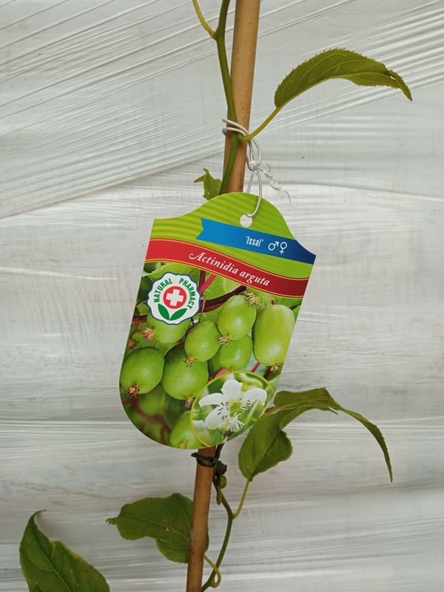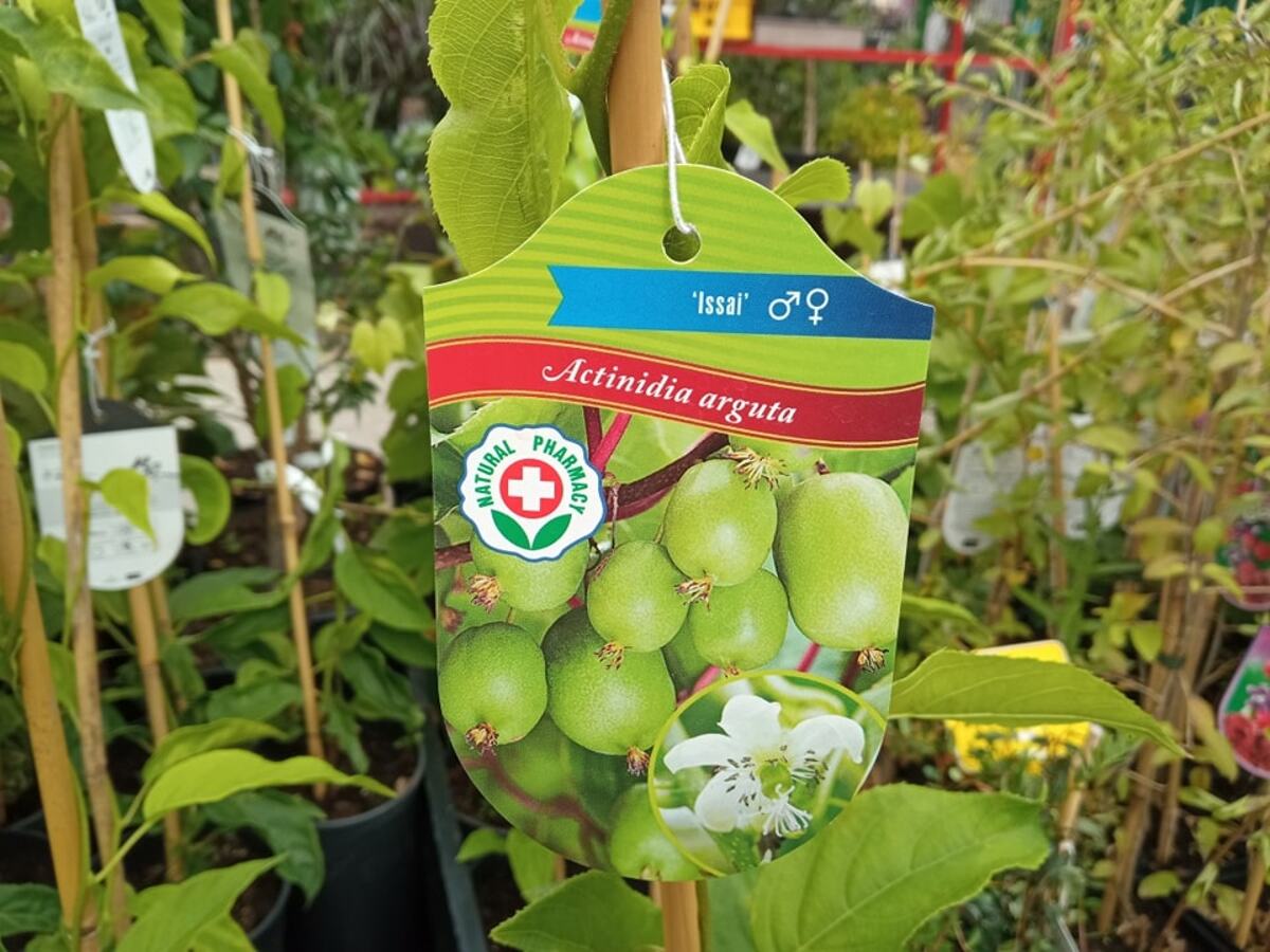 Kiwi Issai je samosprašná odrůda která nepotřebuje druhou rostliny k opylení. Toto kiwi má původ v Japonsku. Je vysoce odolné proti mrazům. Poldy jsou velké 3,5 až 5cm se špičkou na konci. Kiwi kvete v červnu. Kiwi se dá bez problému pěstovat také v našich podmínkách. Polody se dají konzumovat celé jako například angrešt. Kiwi vyhovuje slunné stanoviště s chráněným místem. Latinský název: Actinidia arguta 'Issai'. Kiwi je popínavá rostlina. Kiwi prodáváme zakořeněné v třílitrovém květináči. Sazenice kiwi je vysoká cca 60 až 80cm.