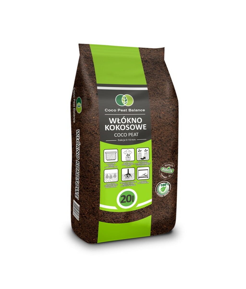 Vysoce kvalitní kokosový substrát s vlákny kokosu 0-10 mm a pH 5,5-6,5, jsou přírodní produkt. Jedná se o výrobek které neobsahuje žádné chemické přísady. Kokosový substrát s vlákny lze využít samostatně, a nebo je přimíchat do jiného substrátu. Výhody: - je lehčí než rašelina, - dobře absorbuje vodu (reguluje hospodaření s vodou, kokosová vlákna fungují jako houba), - dobře absorbuje živiny s vodou a postupně je uvolňuje, - usnadňuje vývoj kořenů, - používá se mimo jiné jako substrát v teráriích, akváriích a při chovu exotických zvířat. Kokosové vlákno neobsahuje mnoho živin, takže pokud má být použito jako samostatný substrát pro pěstování rostlin, doporučuje se ho kombinovat s organickým hnojivem. Obsah kokosového substrátu je 20L.