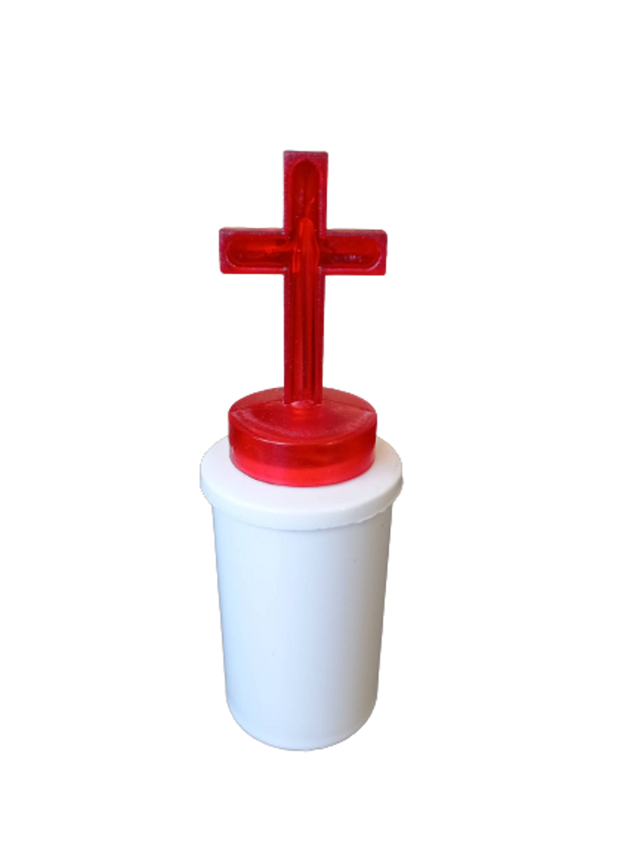 Elektrická led svíčka ve tvaru kříže vydrží svítit bez vypnutí až 30 dní. Led svíčku pohání dvě AA baterie které jsou součástí svíčky, takže po rozbalení stačí svíčku pouze zapnout.  Po vybití lze opět baterie snadno vyměnit. Svíčka imituje hoření skutečného plamene. Elektrická svíčka je vhodná k umístění do náhrobních luceren nebo využít v domácnosti. Lze jí také využít k rozsvícení vydlabané dýně. Svíčka je vyrobena z plastu. Led svíčka je odolná proti dešti a nevadí ji voda. Náhradní baterie naleznete kliknutím zde.