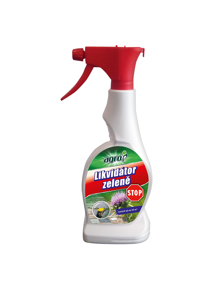 Likvidátor zeleně ve spreji je totální likvidátor veškeré zeleně. Jedná se o neselektivní herbicid který působí na vše zelené. Rostliny ho přijímají především svou zelenou částí. Likvidátor zeleně se dostane do celé rostliny a zahubí jak listy tak i celý kořenový systém, tím pádem rostlina již nikdy nevyroste znovu. Prvním příznakem účinnosti postřiku je křadnutí a žloutnutí listů. Likvidátor zeleně sprej se aplikuje přímo postřikem na listy rostlin. Velkou výhodou spreje je velice snadná aplikace bez ředění. Balení stačí pouze odjistit a aplikovat. Celé balení vystačí na 34 m². Postřik není účinný při dešti nebo mrazu.