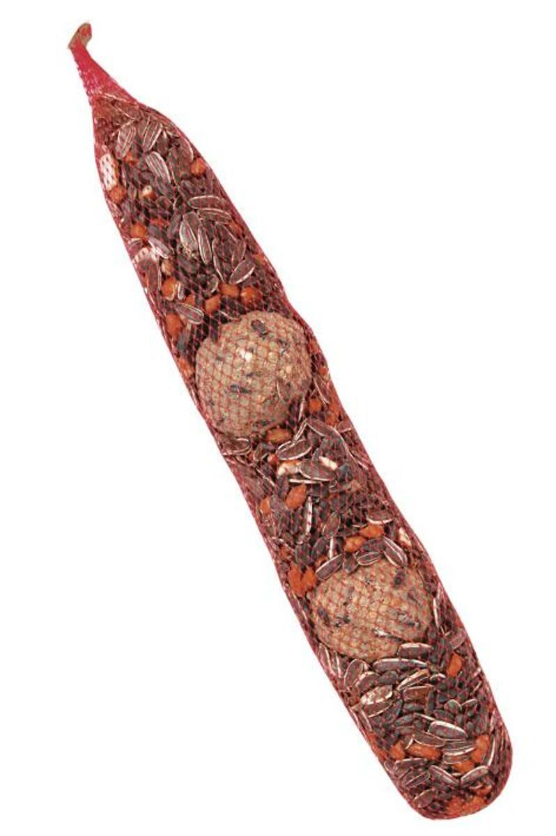 Mix krmná směs k zavěšení pro krmení venkovního ptactva v podzimních a zimních měsících. V obdoby zimy není pro ptáčky snadné sehnat potravu, a proto je dobré umístit na zahradu, terasu, balkón nebo za okno nějaké krmení pro venkovní ptáky. Směs krmné potravy jim totiž dodá potřebnou energii. Směs obsahuje: živočišný tuk 2x lojová koule, slunečnici, rozinky, ořechy. Mix krmná směs pro venkovní ptactvo je zalitá do plastové síťky. Přilétající ptáci se pak drápky zachytí za síťku a mohou hodovat v bezpečí před predátory. Jedná se o ověřený doplněk stravy venkovních ptáků. Baleno v ochrané fólii. SLEVA Z DŮVODU KONEC ZÁRUČNÍ DOBY!