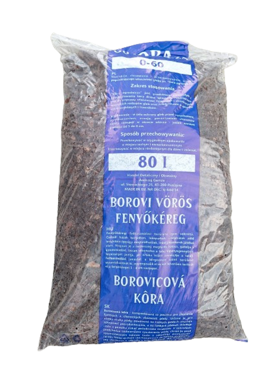 Mulčovací kůra borovicová je balená v objemu 80 litrů. Mulčovací kůra je drcena na střední velikost. Vhodné pro mulčování záhonu, okolo okrasných a ovocných stromů, k vysypávání cest, oddělování záhonů a na úpravu dětských hřišť a koutků. Zabraňuje růstu plevelů a odpařování vláhy z půdy. Kůra je 100% přírodní produkt. Frakce 0-60mm. Kvalita a čerstvost mulčovací kůry zaručena. Zahradnictví Karviná fruto.cz