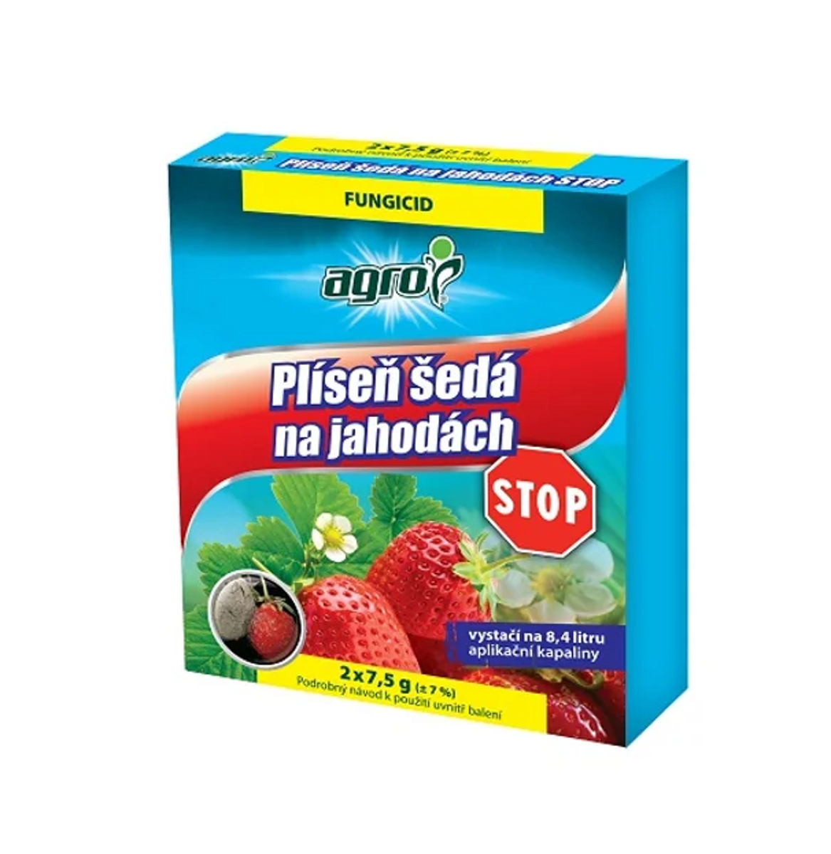 Plíšeň šedá na jahodách STOP od firmy Agro je velice účinný fungicid. Slouží k ochraně proti plísni šedé na jahodníku. Chrání rostlinu před napadením (prevence), ale také po infekci (kurativní účinek). Ochranná lhůta: 7 dní. Aplikace 2 x 7,5 g přípravku pro 8,5 l aplikační kapaliny. Používejte přípravky na ochranu rostlin bezpečně a v souladu s instrukcemi. Před použitím si vždy přečtěte označení a informace o přípravku.