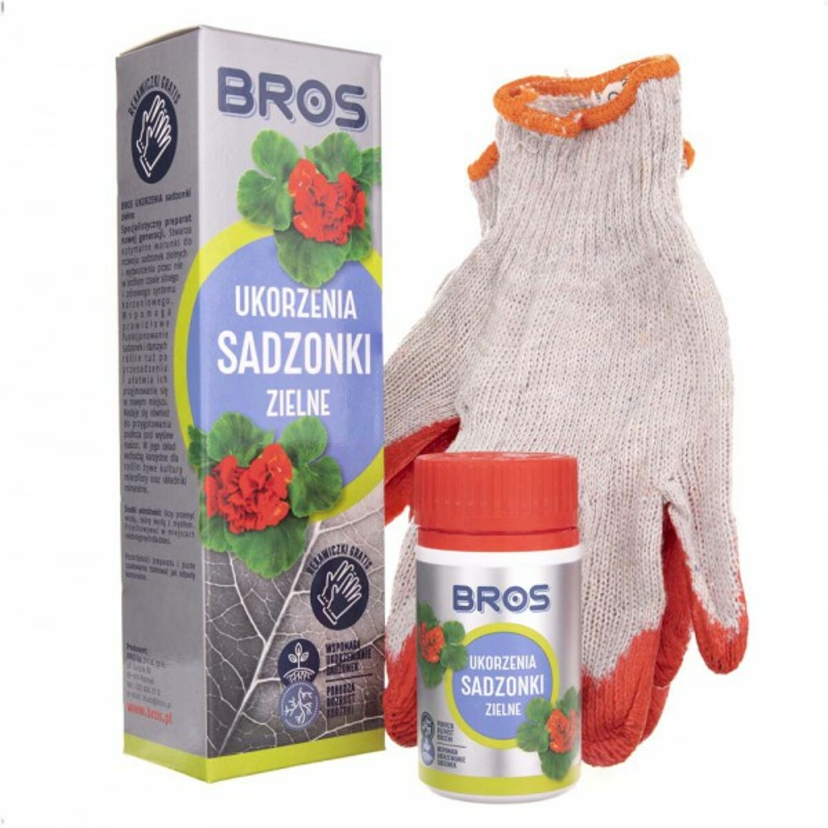 Práškový zakořeňovač od firmy Bros je určen pro zakořenění vše zelených roslin. Jedná se o práškový zakořeňovač který příznivě působí na mladé rostliny a napomáhá rychlejšímu zakořenění. Obsahuje vitamín B. Rukavice v balení ZDARMA.
