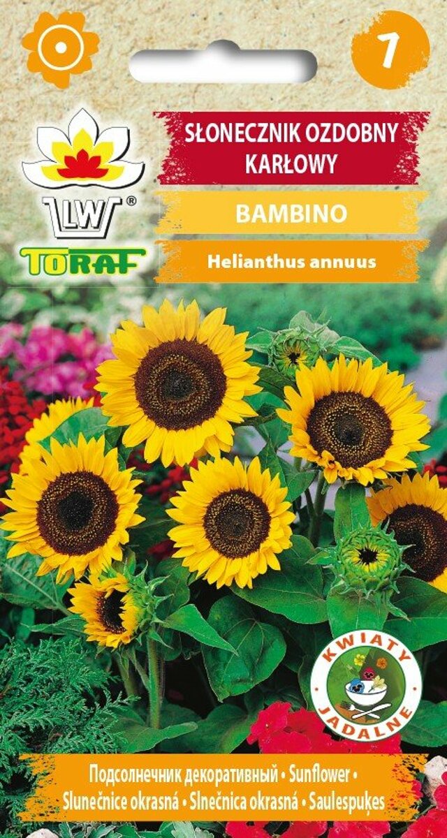 Slunečnice ozdobná je jednoletá rostlina která dorůstá do výšky 30 - 40 cm. Slunečnice má sítě žlutou barvu s tmavším středem a pěstuje se pro dekorativní učínky. Slunečnice se dá vysadit jak do záhonu tak také do ozdobných nádob nebo větších květináčů. Podle místa v květináči doroste slunečnice do výšky menší nebo větší. Slunečnici lze vysadit jednotlivě a nebo trsově. Dekorativní slunečnice má ráda slunné stanoviště z dostatkem vláhy. Květ slunečnice má 20 cm.