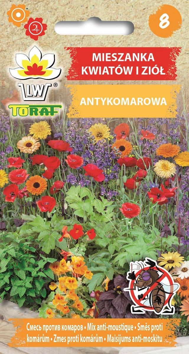 Směs květin proti komárům je vybraná tak aby svými květy odlákala co nejvíc komárů v okolí. Směs je určena pro výsev přímo do půdy, a hodí se do skalek, nebo květinových záhonů. Květiny aktivně svou vůní odlákají všechny druhy komárů. Jakmile začnou všechny rostliny kvést, je o představení komárů postaráno. Kvetoucí rostliny nejsou nijak náročné na pěstování, a dobře snášejí sucho. Výška rostlin 30- 100 cm.