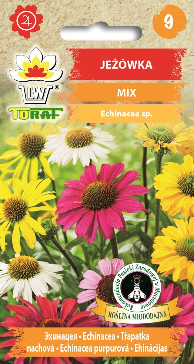 Třapatka nachová (Echinacea) směs odrůd s nádhernými květy. Víceletá rostlina vyhledávaná motýly a opylujícím hmyzem. Vyséváme přímo do země. Výška dospělé rostliny 60 - 80 cm. Daří se ji v jakékoliv půdě, na slunečném stanoviští nebo polostín.