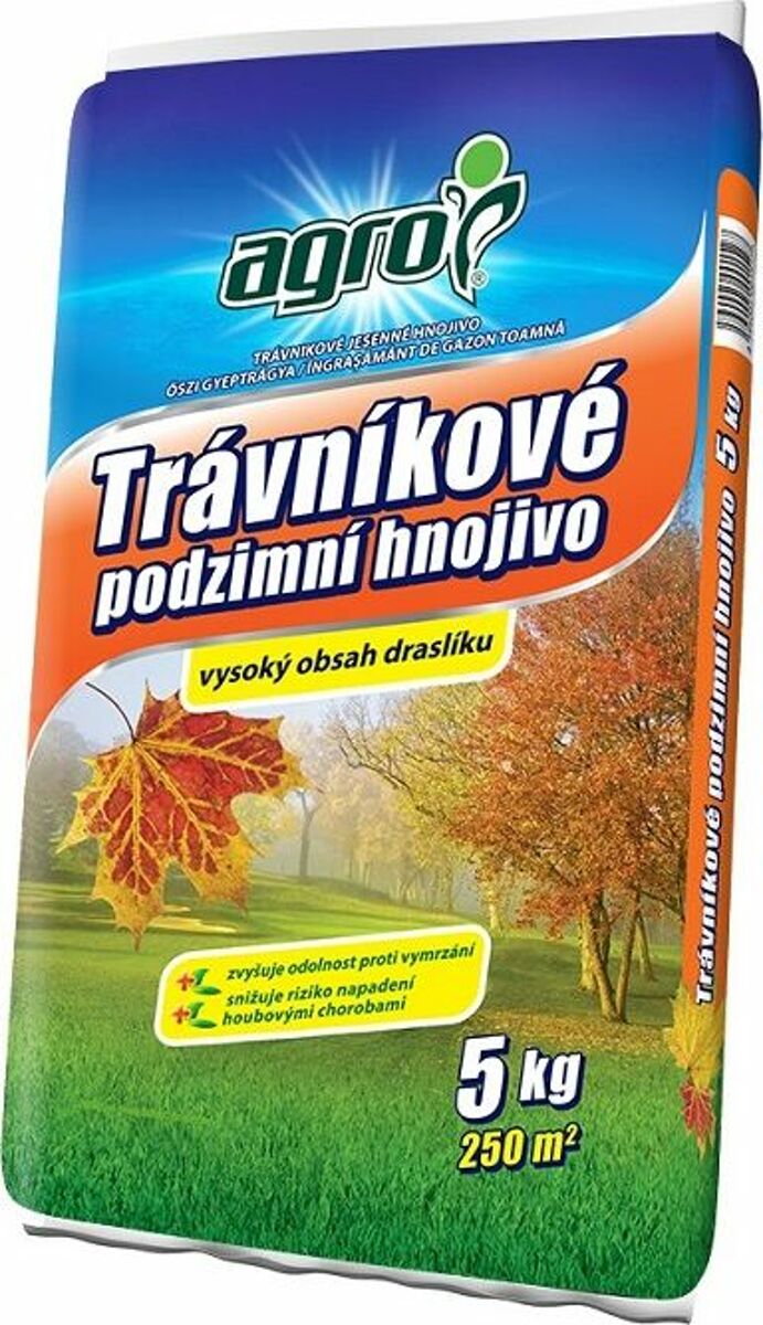 AGRO Trávníkové hnojivo podzim je vyrobeno pro základní hnojení trávníku. Travní hnojivo se aplikuje na začátku i během vegetace. Bezchloridové hnojivo má rychlý účinek, obsahuje vysoký podíl hořčíku pro sytě zelenou barvu trávníku a zdravý vzhled trávníku. Kombinované travní hnojivo je ve formě granulované. Travníkové hnojivo podzim snižuje riziko napadení houbových chorob.