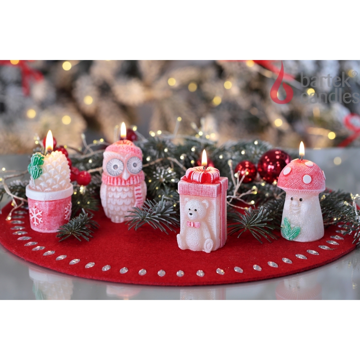 Vánoční ozdobná svíčka - vánoční sova má krásný vzhled s detaily. Vánoční svíčka má tvar vánoční sovy, s bílo červenou barvou, a byla ručně dozdobena a upravena. Velice se u této svíčky dbá na detail. Doba hoření vonné svíčky je 6 hodin. Vánoční svíčku lze opakovaně zapalovat. Vánoční svíčka hoří čistým plamínkem, a nečmoudí. Tato svíčka je také vhodná jako dárek pro Vaše blízké a známe. Vánoční svíčku používejte pouze v souladu s návodem ! Jeli knot svíčky delší jak 5mm zkraťte jej ! Skladujte mimo dosah dětí !