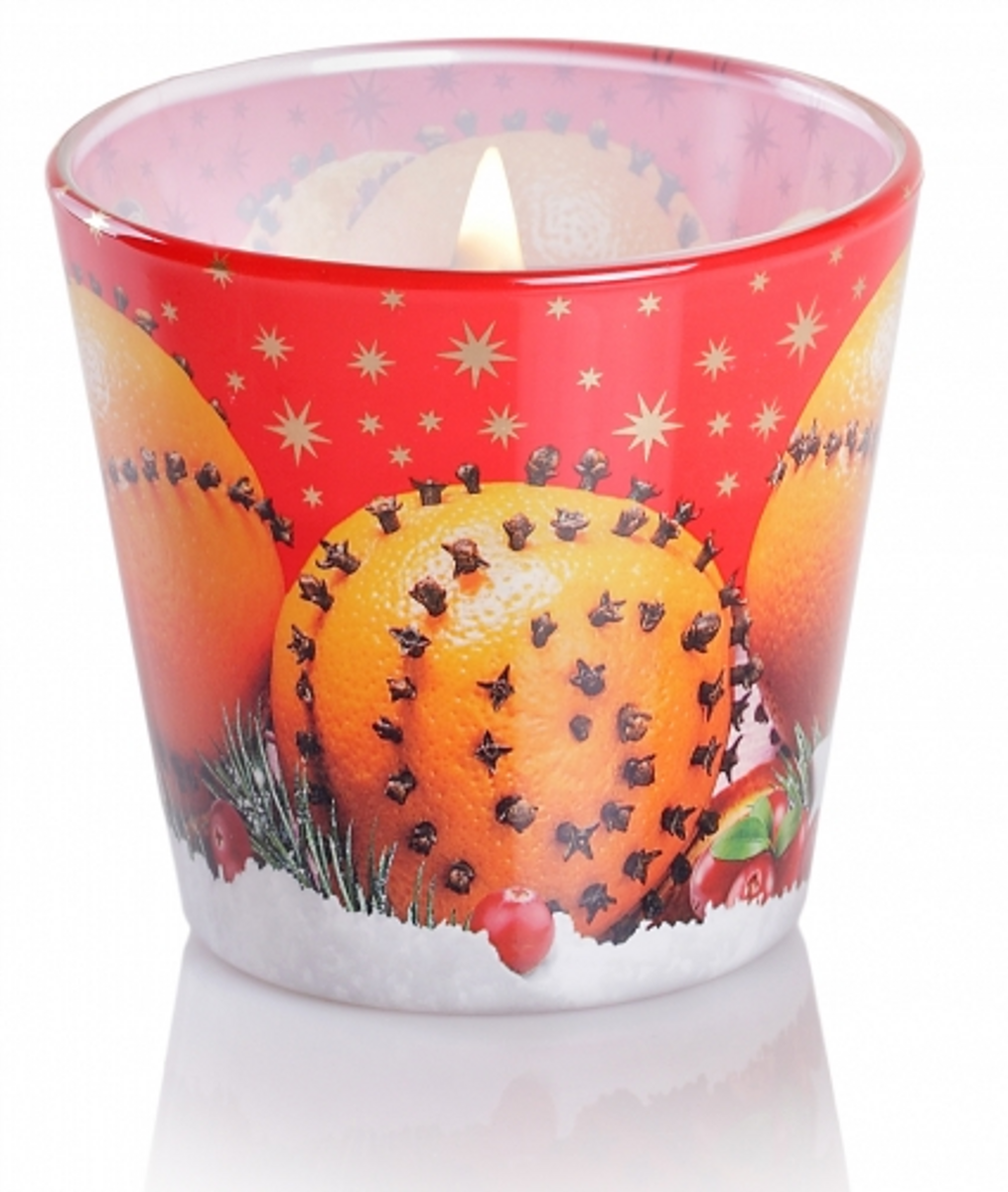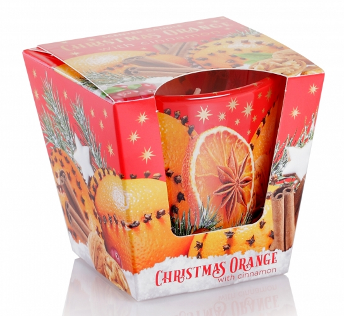Vánoční vonná svíčka ve skle - VÁNOČNÍ POMERANČ SE SKOŘICÍ má příjemnou vánoční vůni. Vonná svíčka je zalitá v dekorativním skle, a je zabalená v krásném vánočním papírovém obalu. Doba hoření vonné svíčky je 30 hodin. Svíčka po celou dobu hoření krásně vonní, a dokáže provonět celou místnost. Vánoční vonnou svíčku lze opakovaně zapalovat. Vonná svíčka hoří čistým plamínkem, a nečmoudí. Tato svíčka je také vhodná jako dárek pro Vaše blízké a známe. Vonnou vánoční svíčku ve skle používejte pouze v souladu s návodem ! Jeli knot svíčky delší jak 5mm zkraťte jej ! Skladujte mimo dosah dětí !