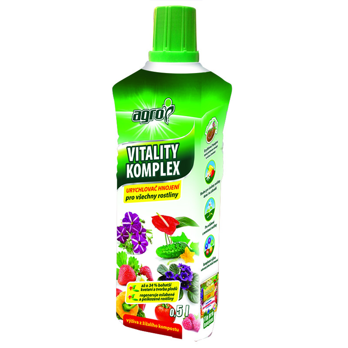 Vitality komplex pro všechny rostliny je unikátní kapalné hnojivo které je vyrobeno ze speciálního výluhu z vermikompostu. Vermikompost vzniká činností kalifornských žížal. Hnojivo obsahuje vysoké množství výživných látek a také urychlovač hnojení. Vitality komplex napomáhá růstu a stimulaci rostliny. Velice vhodné pro oslabené, vyčerpané a nerostoucí rostliny. Hnojivo se dá aplikovat jak zálivkou tak i postřikem přímo na listy rostliny. Vitality komplex je 100% přírodní kapalné hnojivo. Dávkování: 15 ml (1 víčko od lahve) do 2 litrů vody pro zálivku.